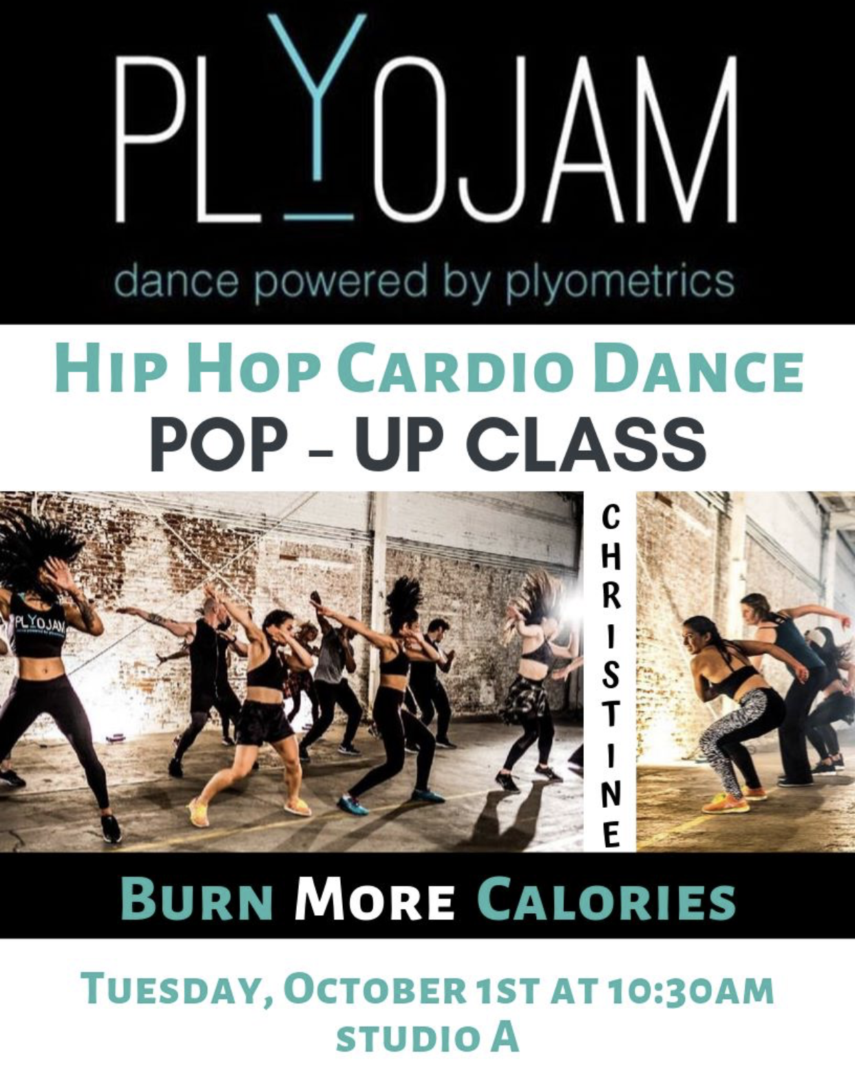 1 hour PlyoJam pop-up class at Kennedy Club Fitness in San Luis Obispo. If you’re interested, contact Christine Hernandez to make a reservation. 805-781-3488